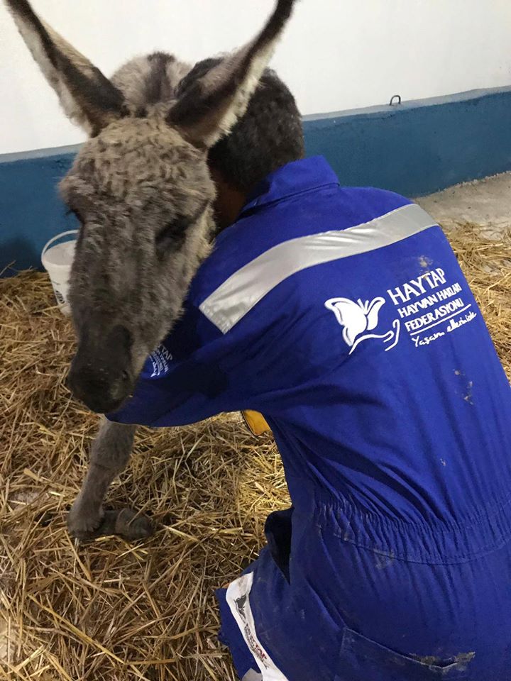 Doğuştan ayak tırnaklarında problem olan, ön ayaklarını düz basamayan Sevgi Eşek'in tecavüze uğradığı da anlaşılınca, korunmak üzere Haytap Emekli Hayvanlar Çiftliğimize getirildi.