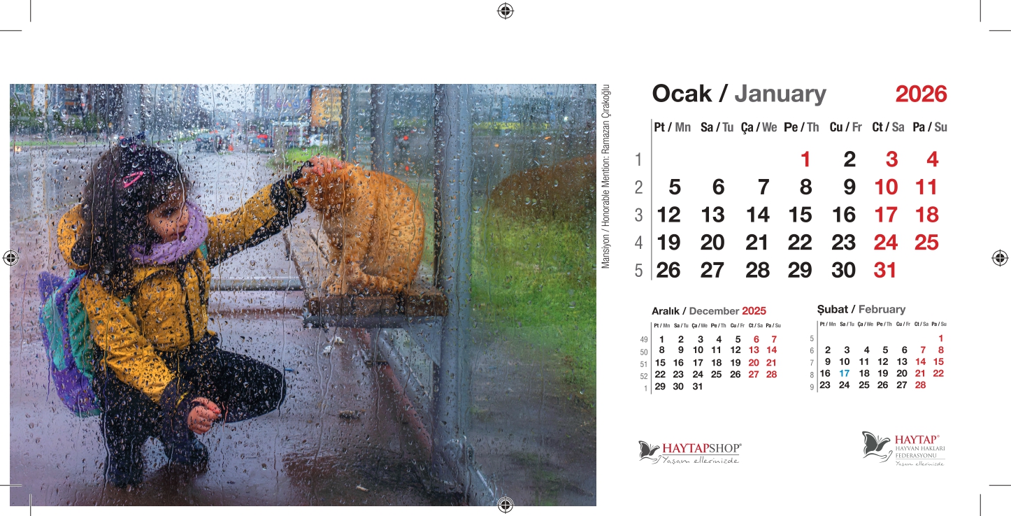 2026 Haytap Masa takvimimiz, 2025 fotoğraf yarışmasında dereceye giren ancak farklı fotoğraflardan oluşmaktadır. Duvar takvimi kapağı, birinci olan yarışma fotoğrafımızdan ve diğer yarışma katılımcılarımızın fotoğraflarından oluşmaktadır.