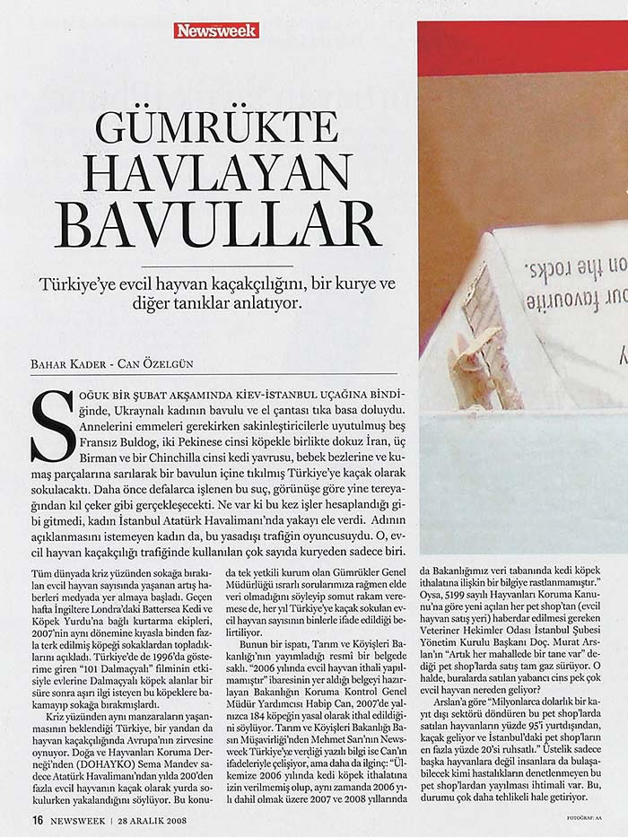 Dünyanın önde gelen haber dergilerinden Newsweek Türkiye bu haftaki sayısını HAYTAP’ın yıllardır anlatmaya çalıştığı kaçak hayvan ticaretine ve bu ticaretin nasıl yaşandığını detaylı olarak anlatan yazısına yer verdi. Federasyon başkanımız Av Ahmet Kemal Şenpolat ile kardeş sitemiz petshop gercegi.com dan Burcu Sevim ile bu hayvanalrın özellikle Istanbul Havaalanında ele geçirildikten sonra kendisine yediemin olarak bırakılan Sema Mandev’in görüşlerine yer verildi.