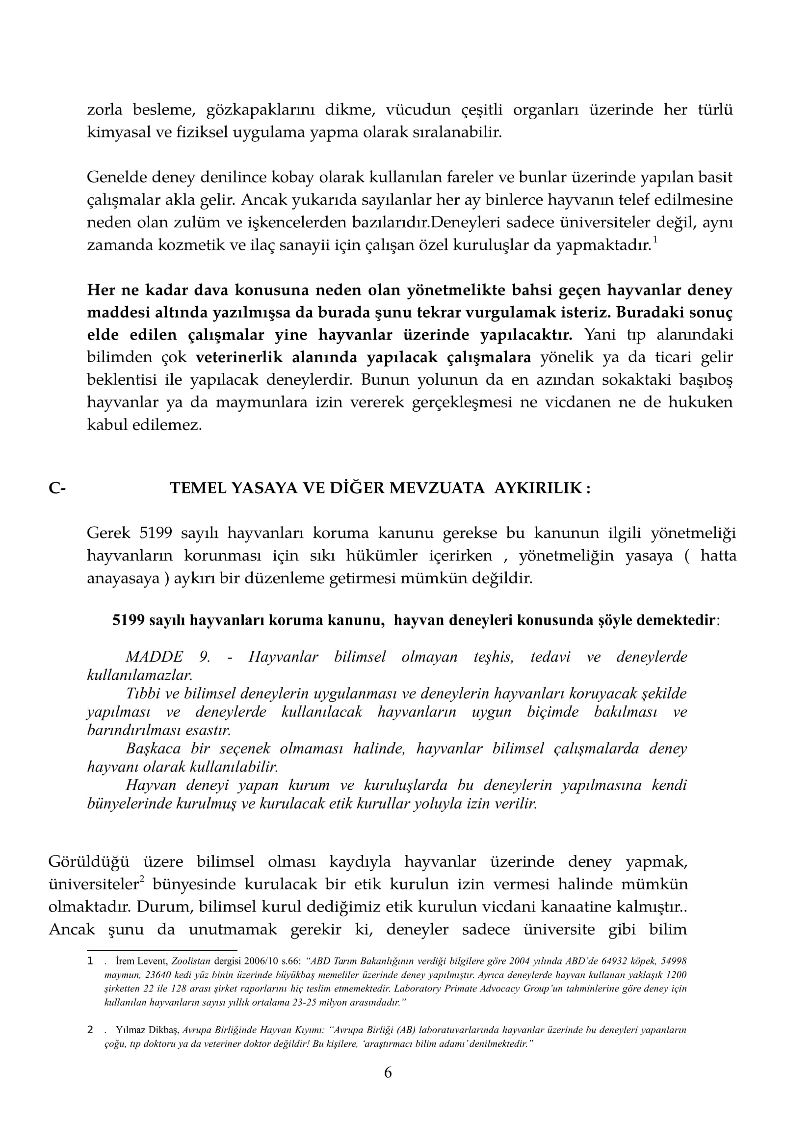 Deney Maddesinin Bakanlıkça Çıkarılan Yönetmelikten İptali İçin Haytap Tarafından Açılan Dava Dilekçemiz :