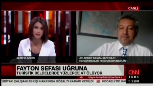 CNN TURK televizyonunda yük hayvanları gerçeğini ve fayton atlarını HAYTAP olarak canlı yayında konuşacağız. Onların sorunlarını tekrar masaya yatırıyoruzLütfen İBB 153 hattını aramaya , fayton atların kaldırılması yerine elektirikli faytornların gelmesi için kitlesel talep oluşturmamıza siz de yardımcı olun. Diğer kentlerdeki arkadaşlar da kendi belediyelerini ısrarlı şekilde telefon ve mail yoluyla sıkıştırmaya devam etsin İmza kampanyalarına kesinlikle umut bağlamayın.7/10